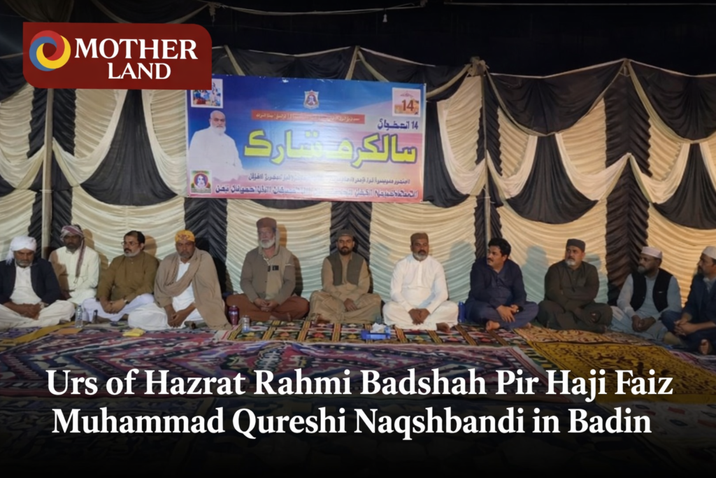 Badin — The Urs and birth anniversary of Hazrat Rahmi Badshah Pir Haji Faiz Muhammad Qureshi Naqshbandi was observed with deep reverence in District Badin. The event was organized by Najiya Students Organization Nishat Jamaat Lowari Sharif Unit Khansahib Abdul Rehman and attracted a large gathering of devotees and community members.The ceremony was presided over by Habibullah Junejo, Central President of Najiya Students Organization Nishat Jamaat Lowari Sharif. The main address was delivered by Syed Fida Muhammad Junejo, who highlighted the spiritual legacy of Hazrat Rahmi Badshah Pir Haji Faiz Muhammad Qureshi Naqshbandi and emphasized the importance of unity, tolerance, and service to humanity.Special guests included Chacha Allah Bux Korejo, Mubarak Keryo, and Deen Muhammad Korejo, Managers of Pir of Lowari Sharif. Honored guests Molabux Channa (Central Vice President), Abdullah Junejo (Central General Secretary), Dr Sharafuddin Talpur, and regional office bearers of Nishat Organization Jamaat Badin also attended.Speakers paid tribute to Hazrat Rahmi Badshah Pir Haji Faiz Muhammad Qureshi Naqshbandi, recalling his lifelong dedication to spiritual guidance, social harmony, and moral values.